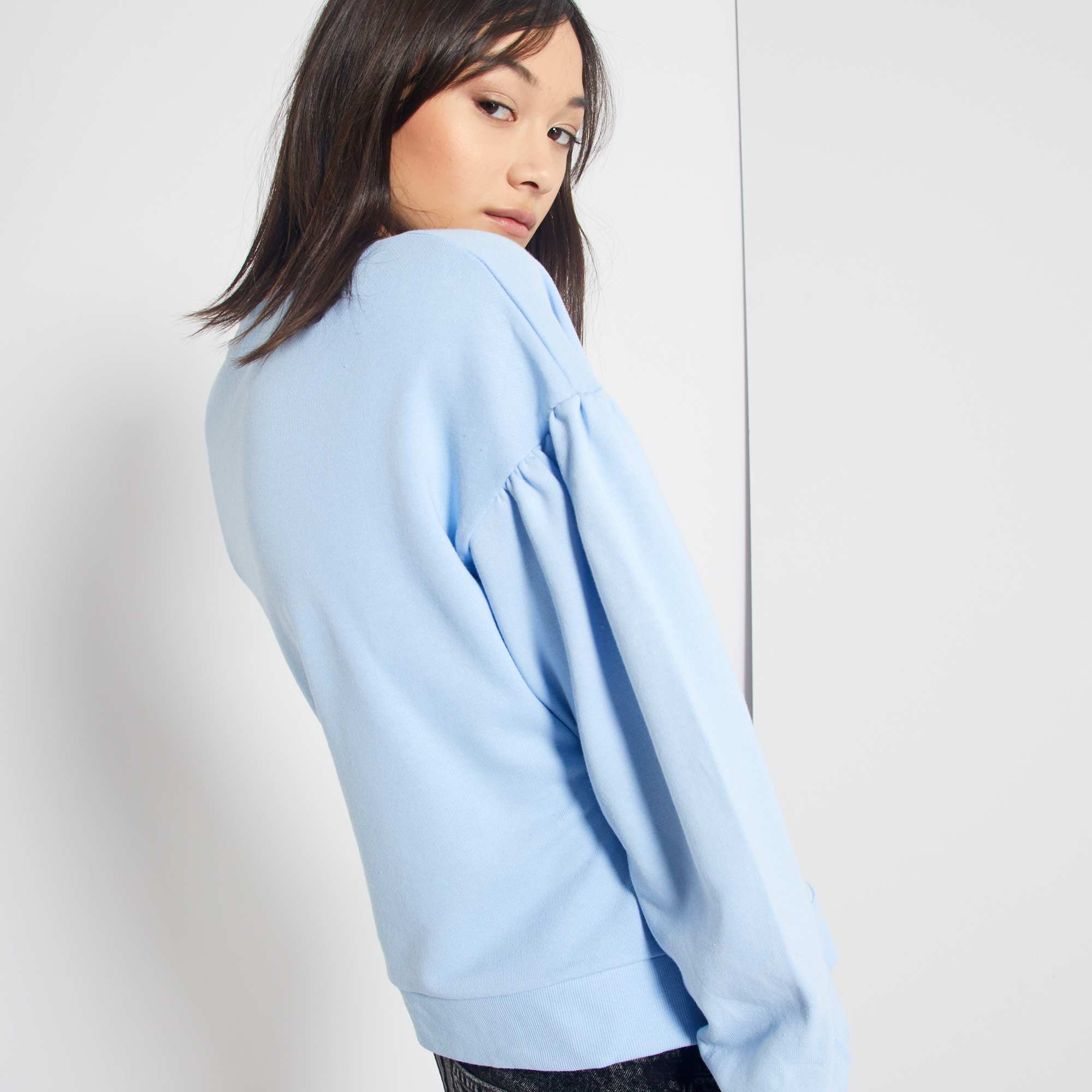 - Met ribboord aan de hals, mouwboorden en onderkant