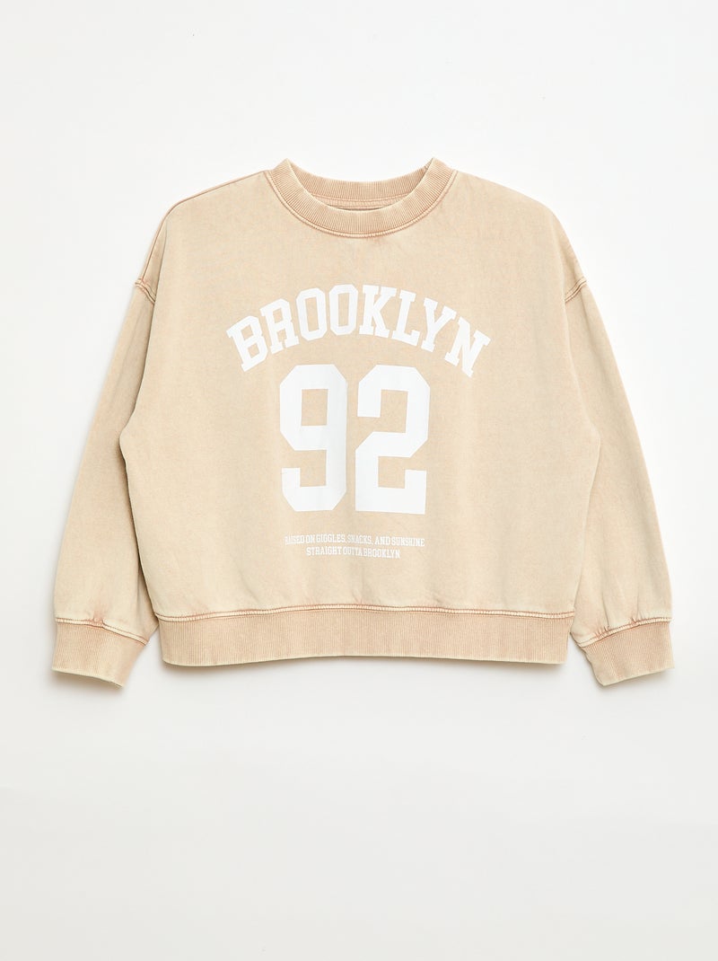 Sweater met ronde hals en print - Biege