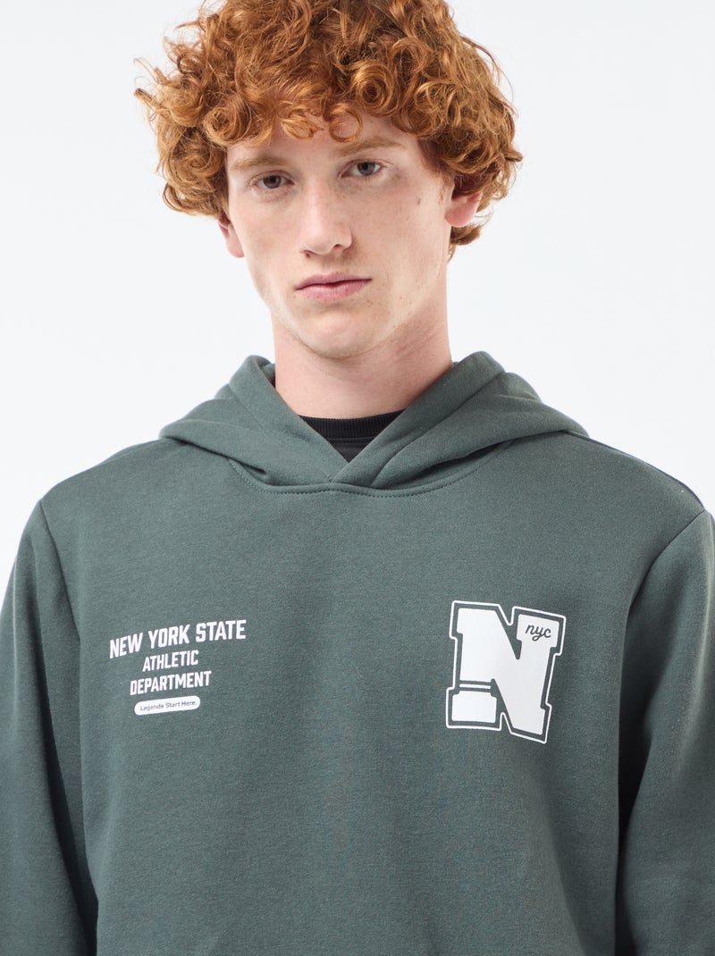 Sweater van joggingstof met print - Kaki