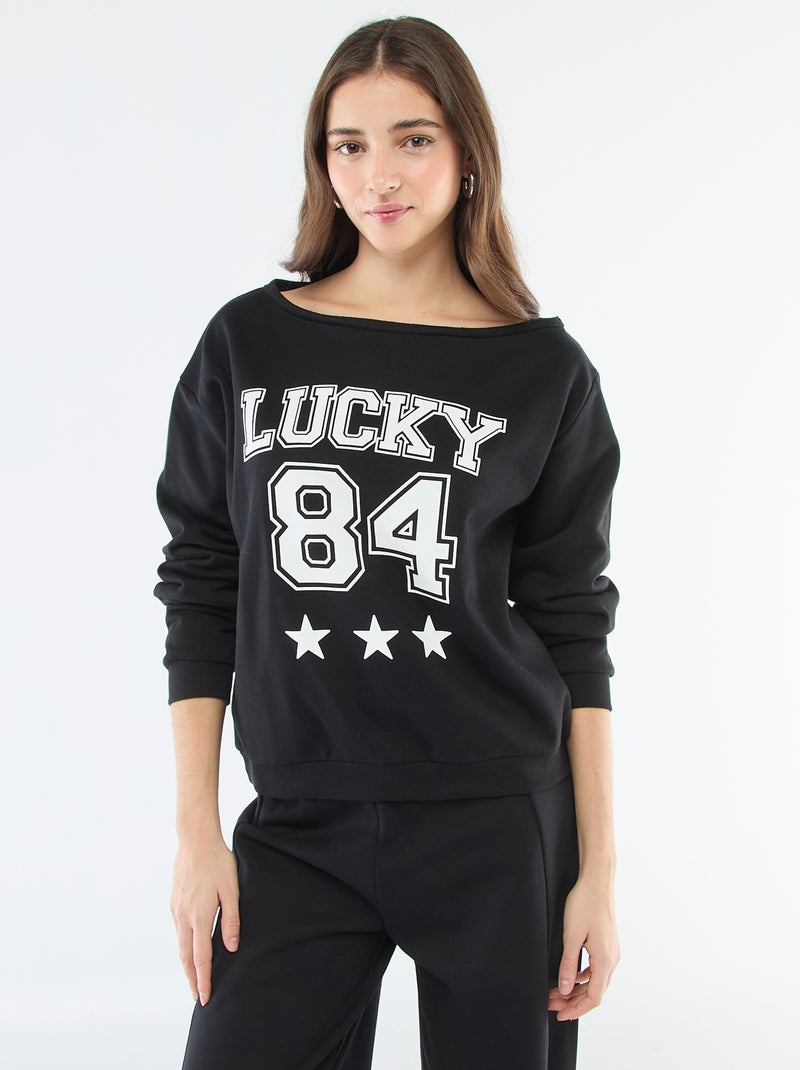 Sweater van joggingstof met sportieve look - Zwart