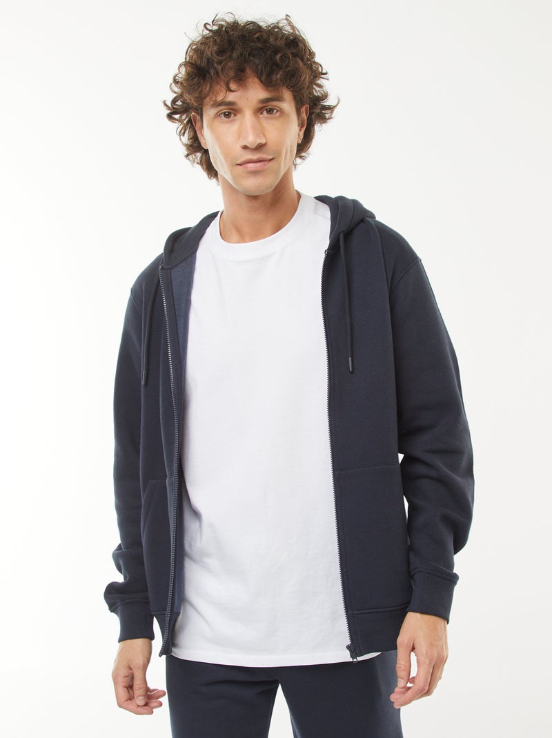 Sweatshirt van fleece met rits en capuchon - Blauw