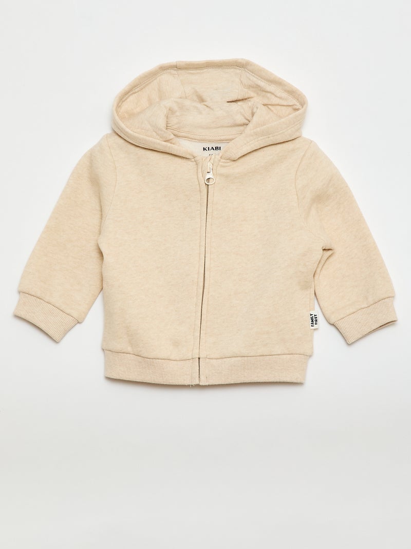 Sweatvest met rits en capuchon van geborstelde fleece - Biege