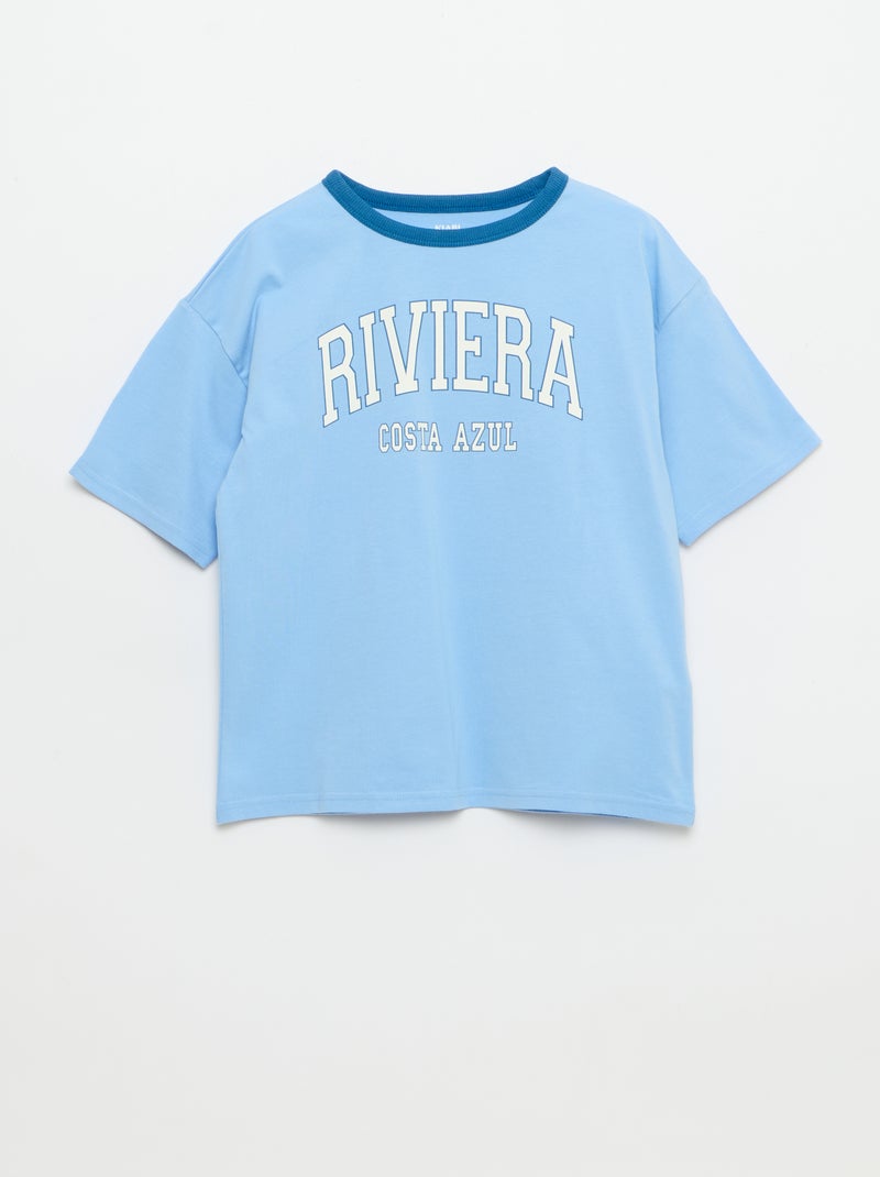 T-shirt met fantasieprint, korte mouwen en contrasterende biezen - Blauw