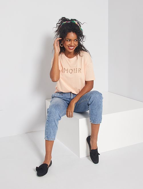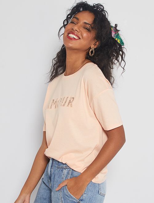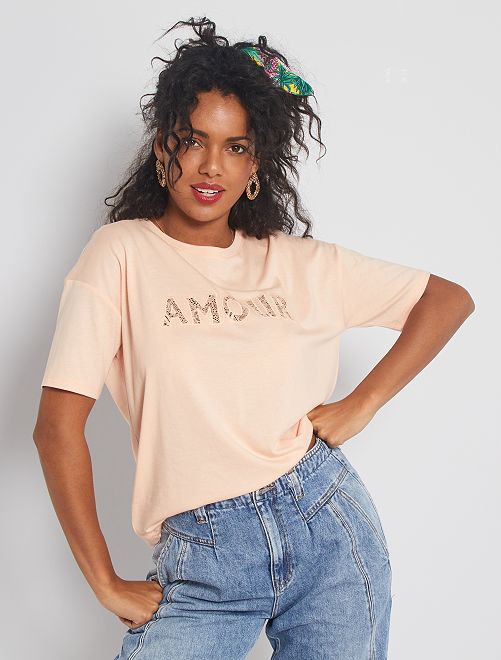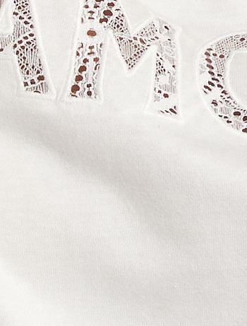 - Opgestikt kanten opschrift 'Amour' aan de voorkant