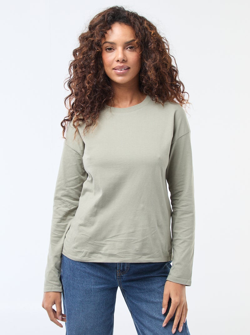 T-shirt met lange mouwen en ronde hals - Groen