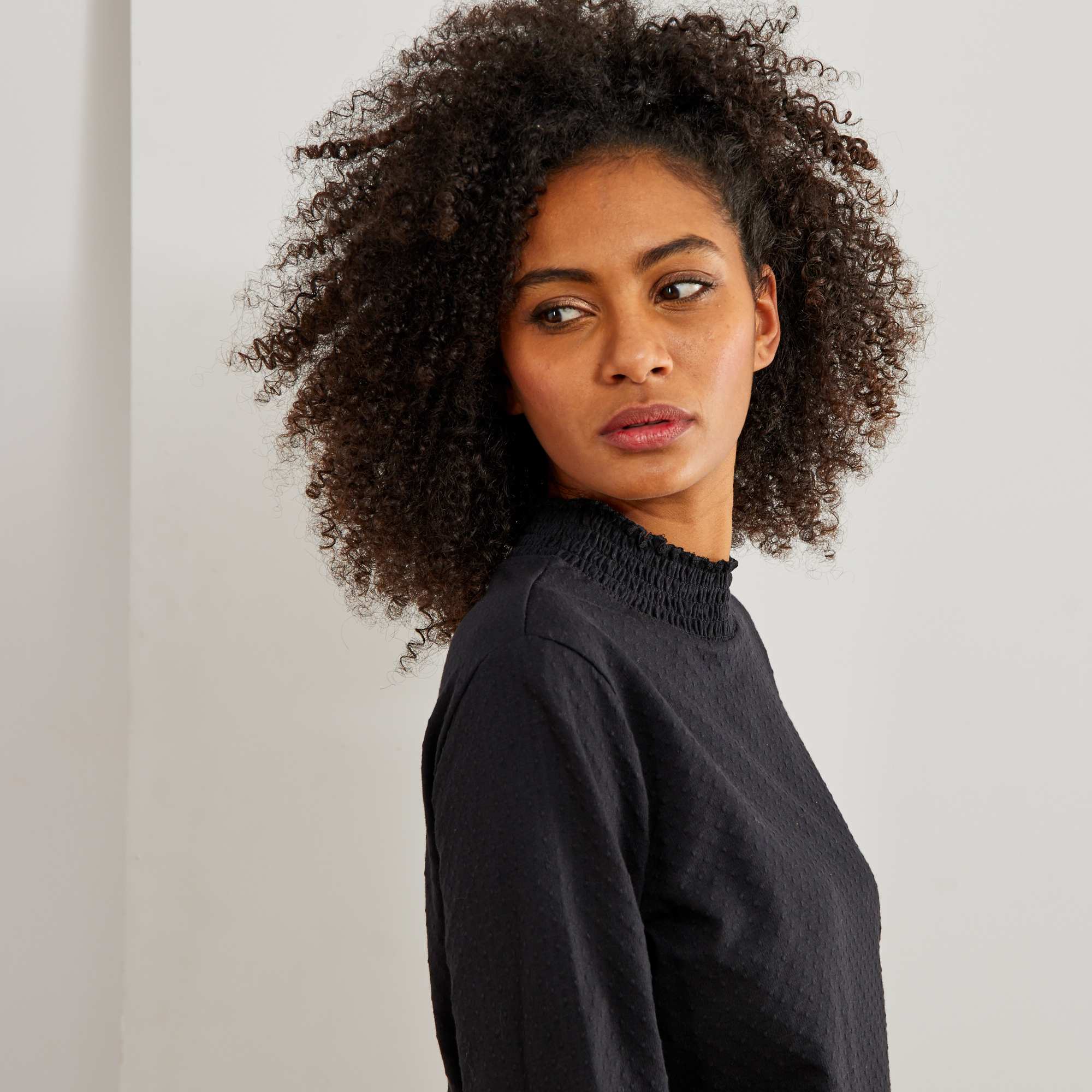 De opstaande kraag is een mix van de col en de ronde hals, zit heerlijk en is supertrendy!