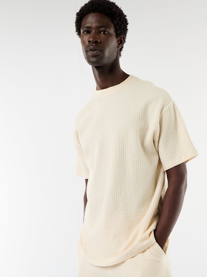T-shirt met print en korte mouwen van gewafelde stof - Wit