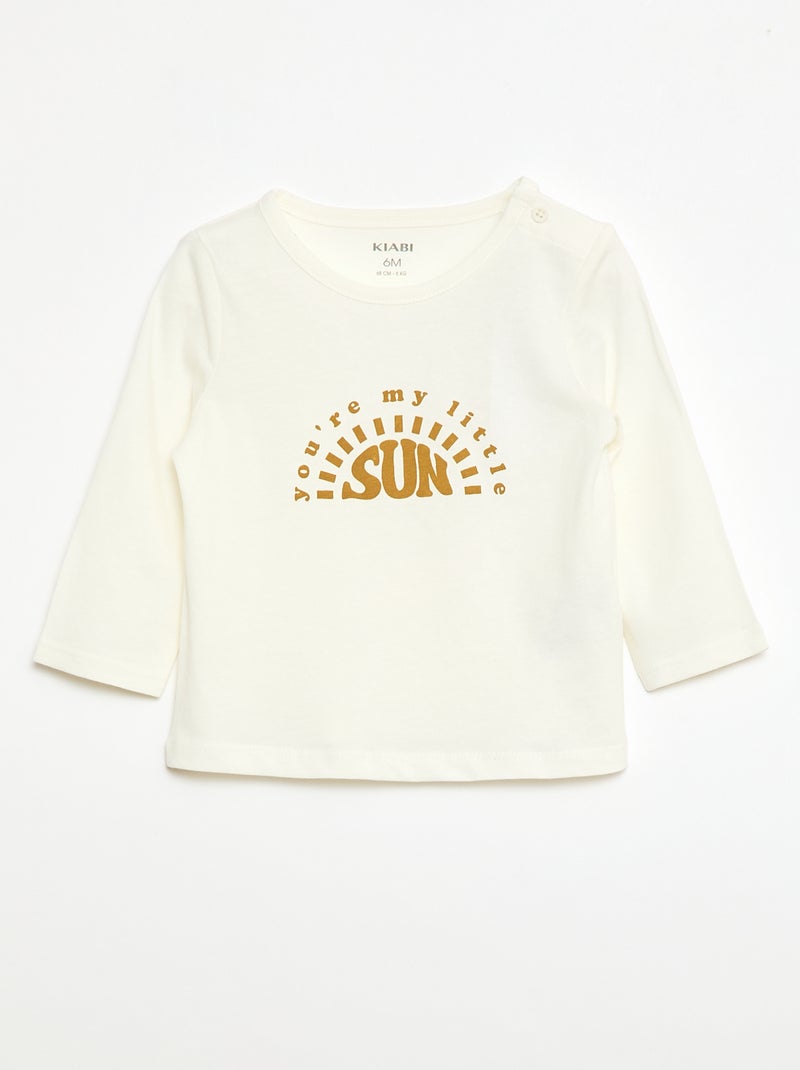 T-shirt met print en lange mouw - Wit