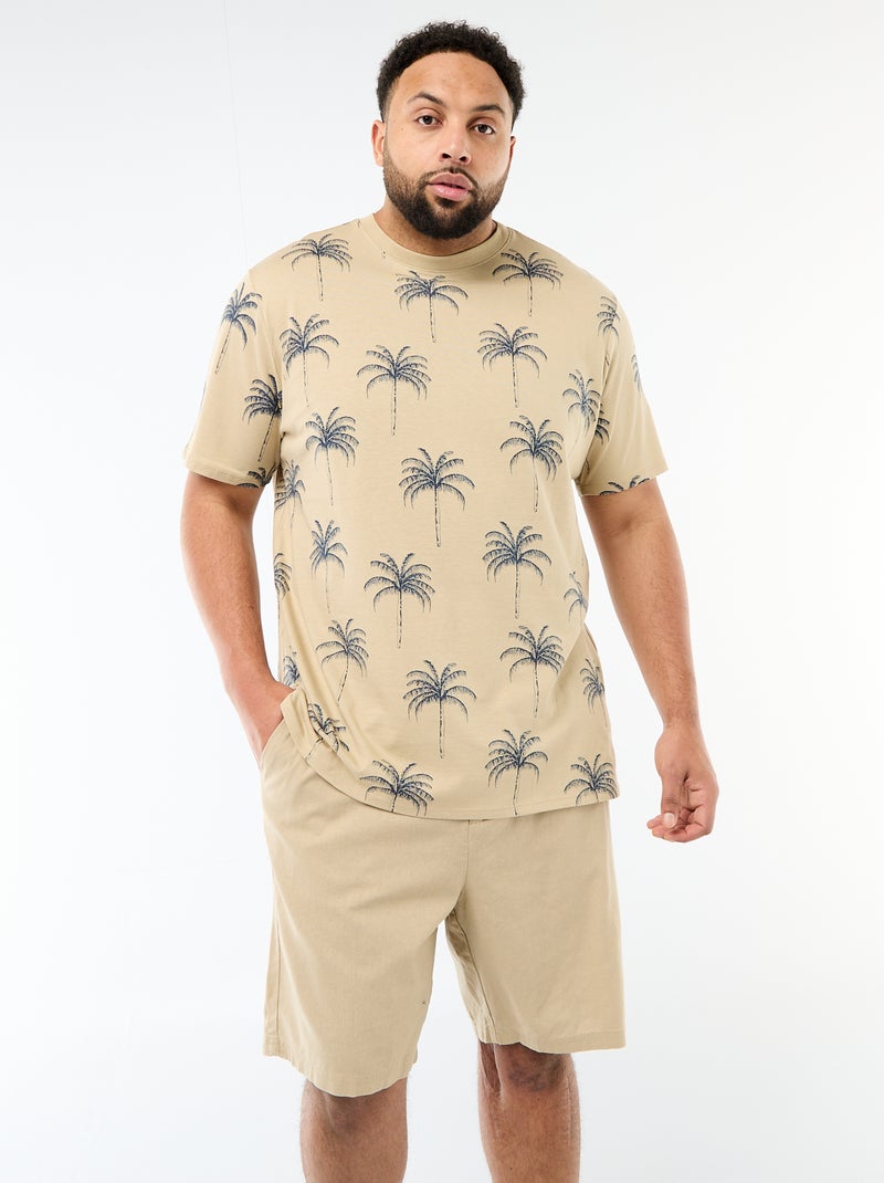 T-shirt met print, korte mouwen en ronde hals - Biege