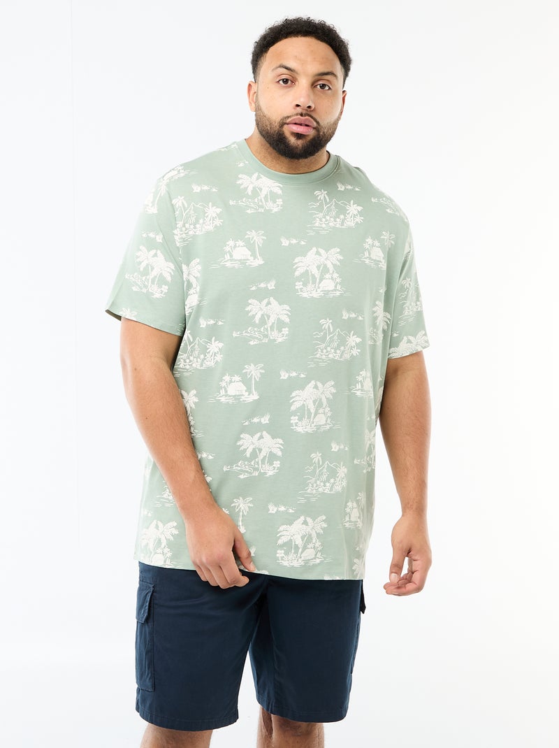 T-shirt met print, korte mouwen en ronde hals - Groen