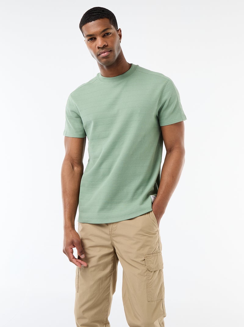 T-shirt met ronde hals en korte mouwen van gewafelde stof - Groen