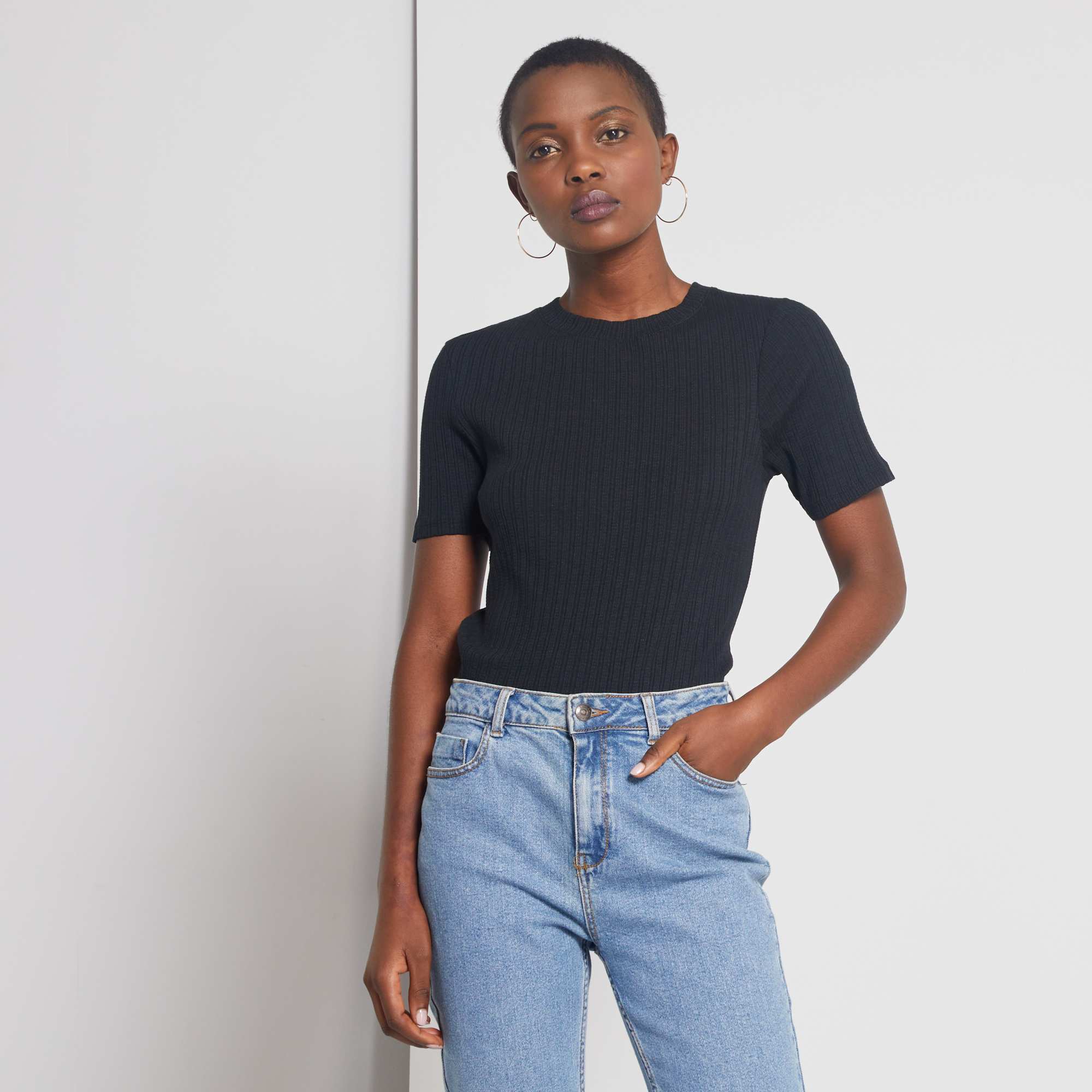 Mooi, geribd fantasietricot aan een zacht prijsje... Redenen genoeg om je dit T-shirt aan te schaffen!