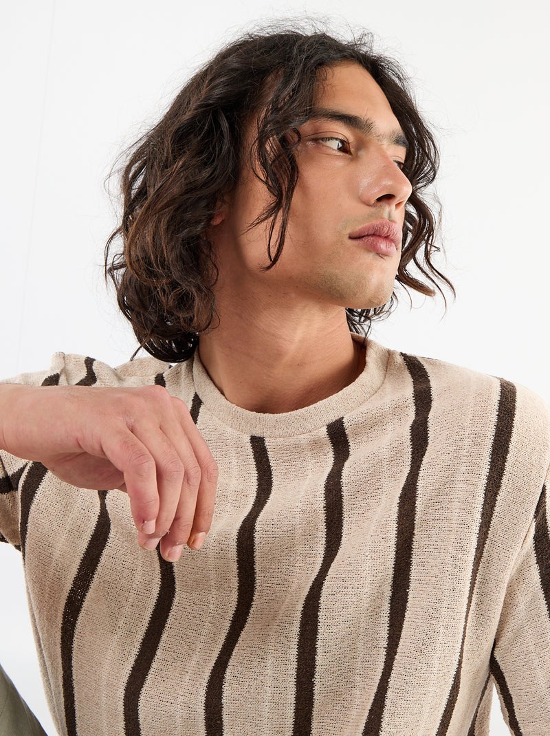 T-shirt van jerseytricot met korte mouwen - Bruin