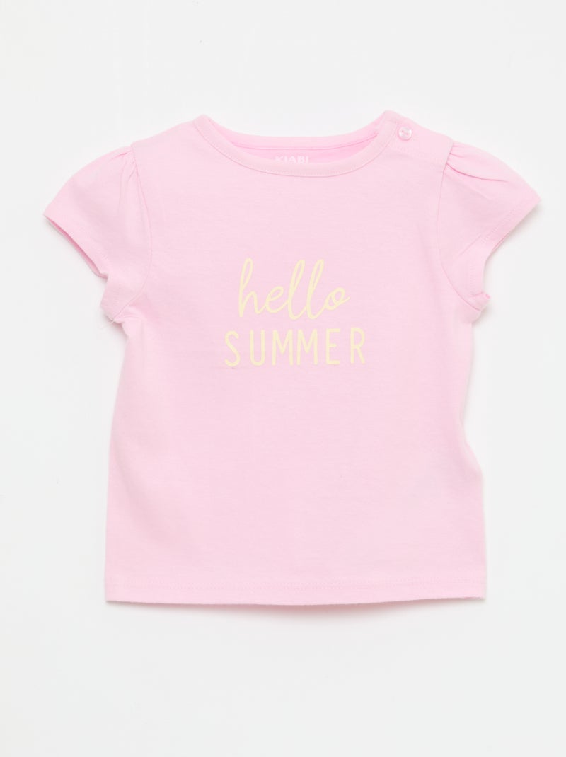 T-shirt van jerseytricot met korte mouwen - Rose