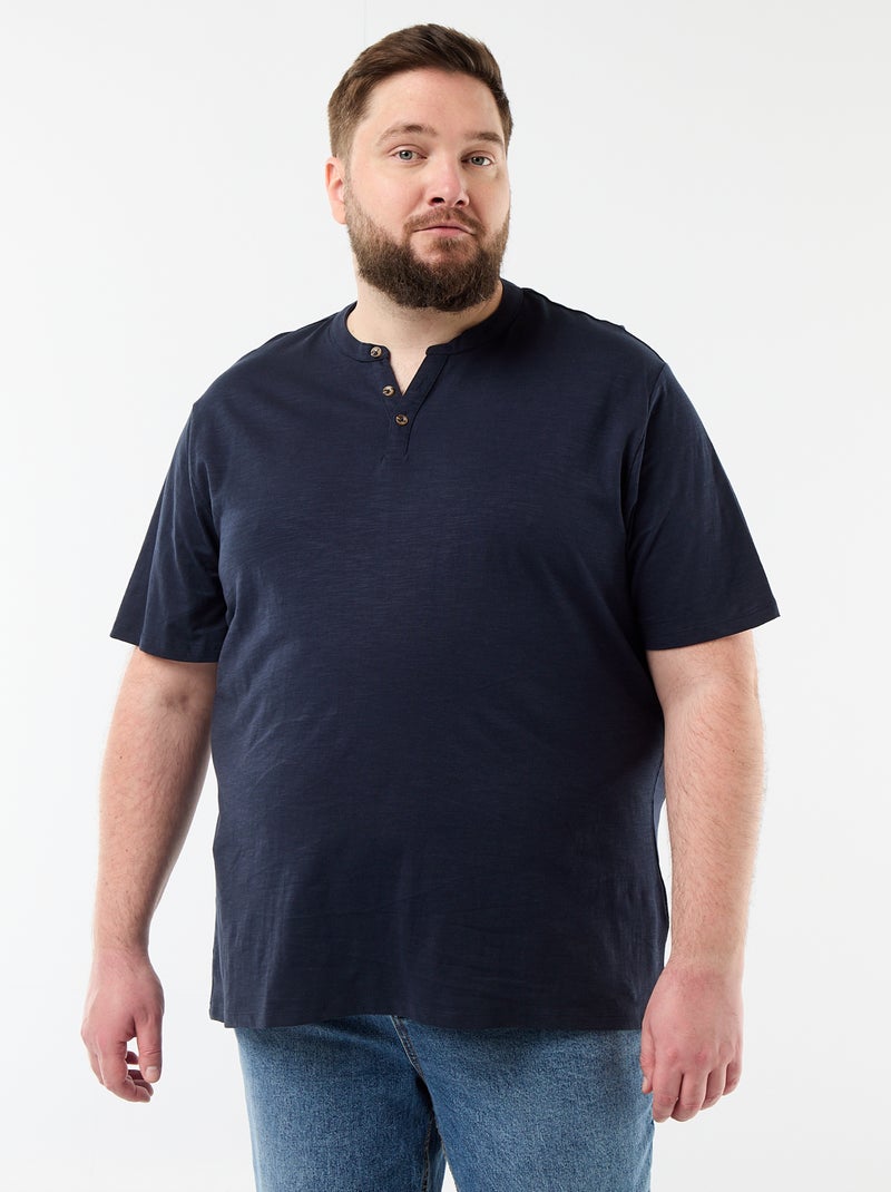 T-shirt van jerseytricot met tunisische kraag en korte mouwen - Blauw
