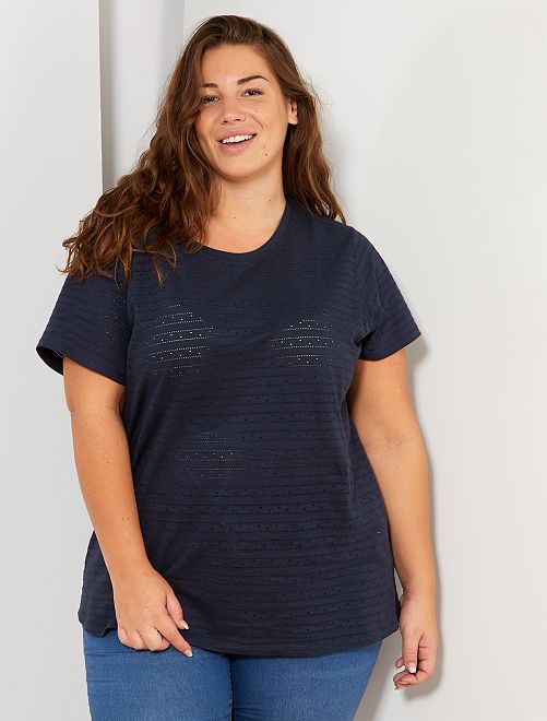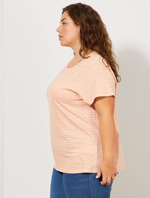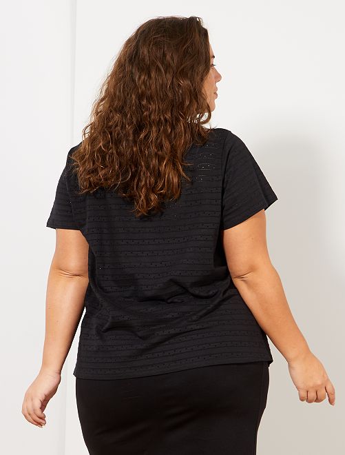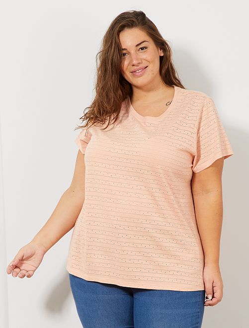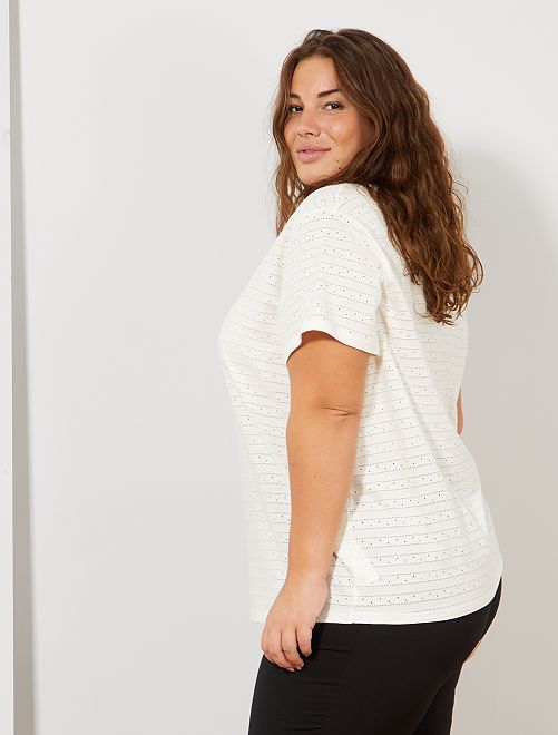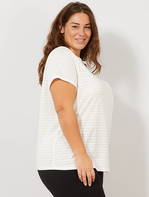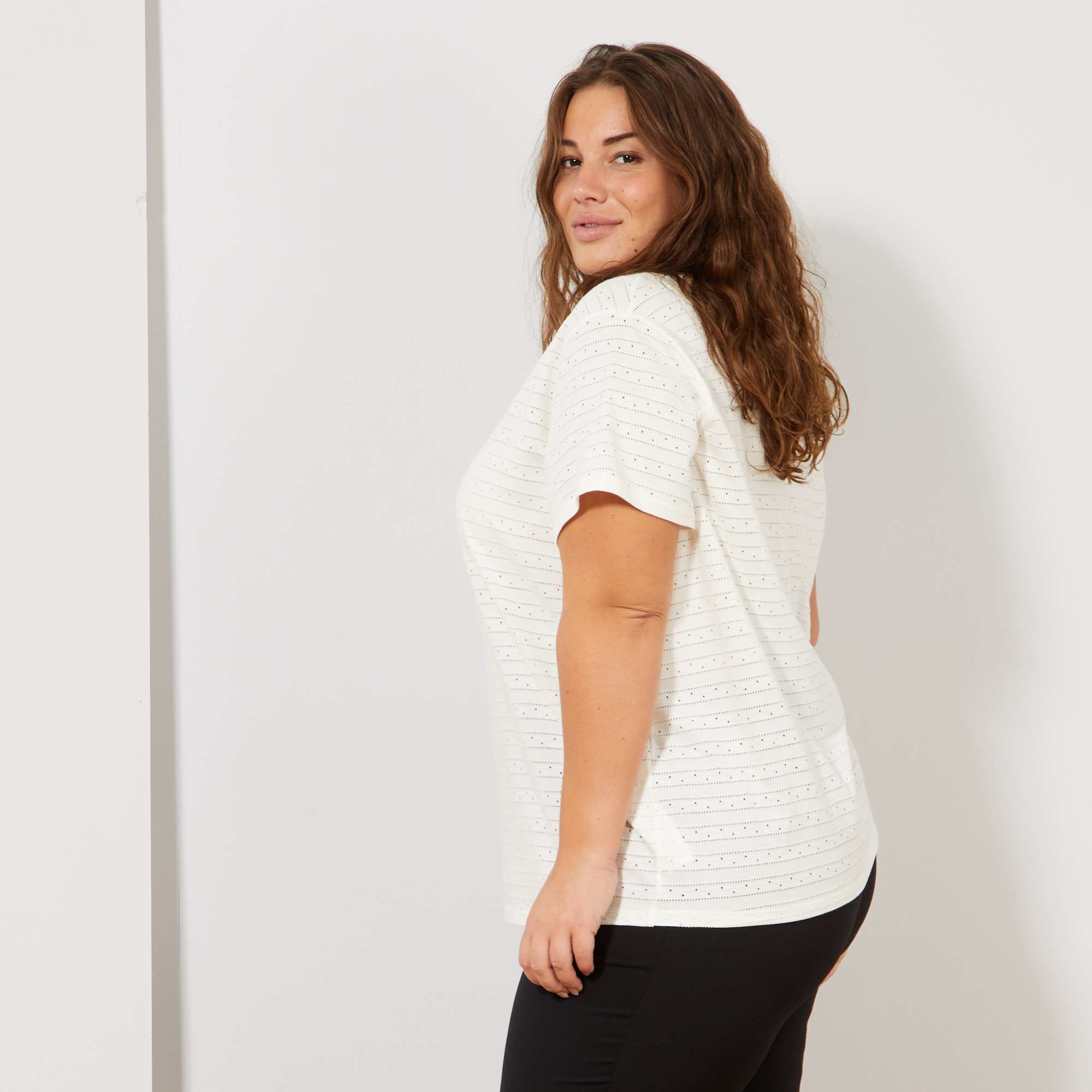 Een origineel T-shirt, dat je maar moeilijk kunt weerstaan dankzij het in lijnen opengewerkte tricot. Mooi onder een jasje of bij je lievelingsjeans!