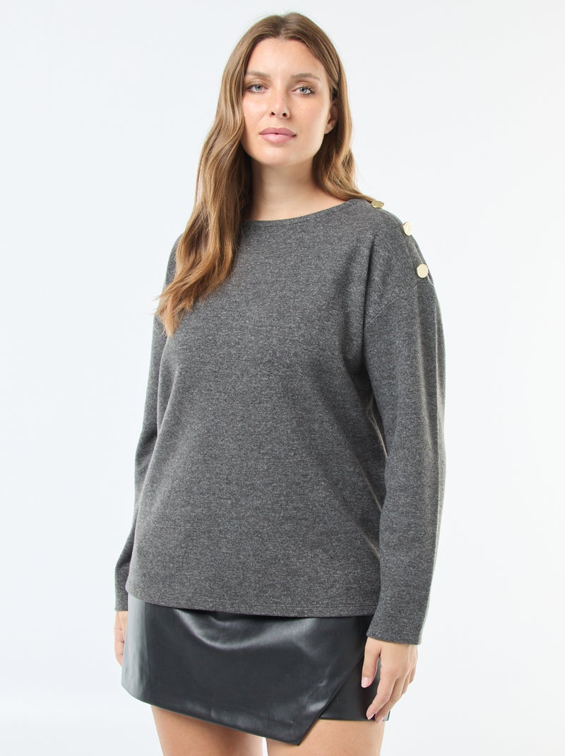T-shirt van zacht tricot met goudkleurige knopen - Grijs