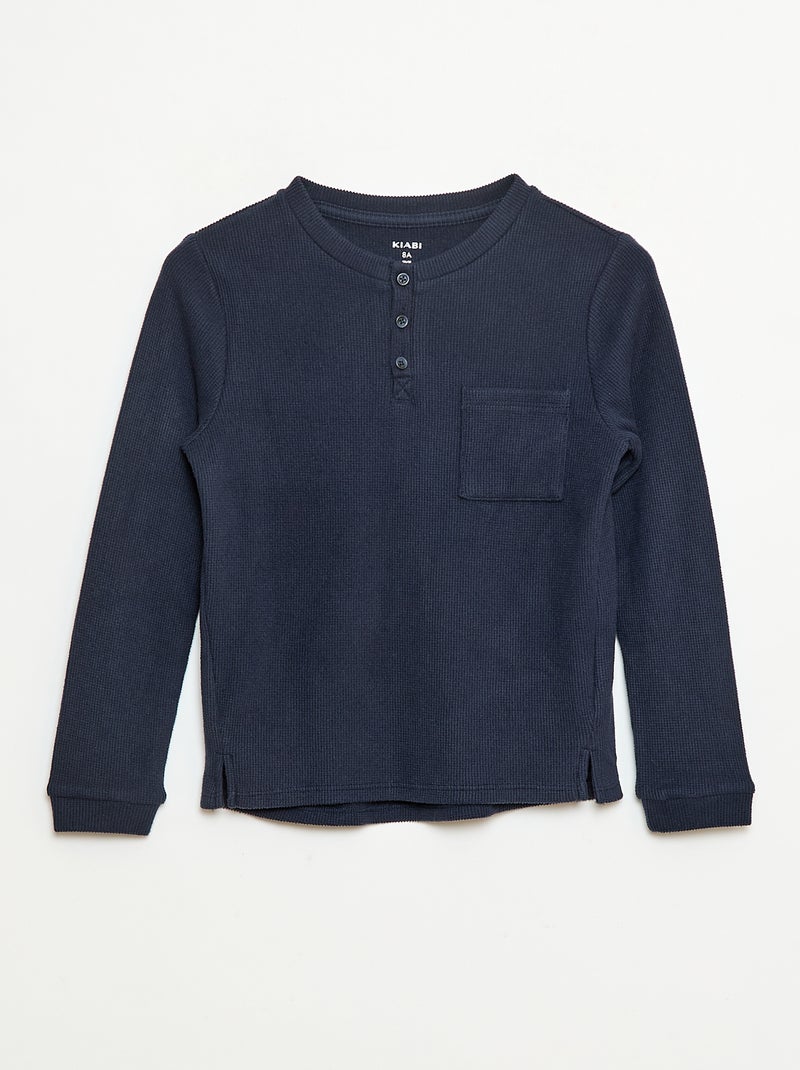 T-shirt van zachte tricot met borstzakje - Blauw