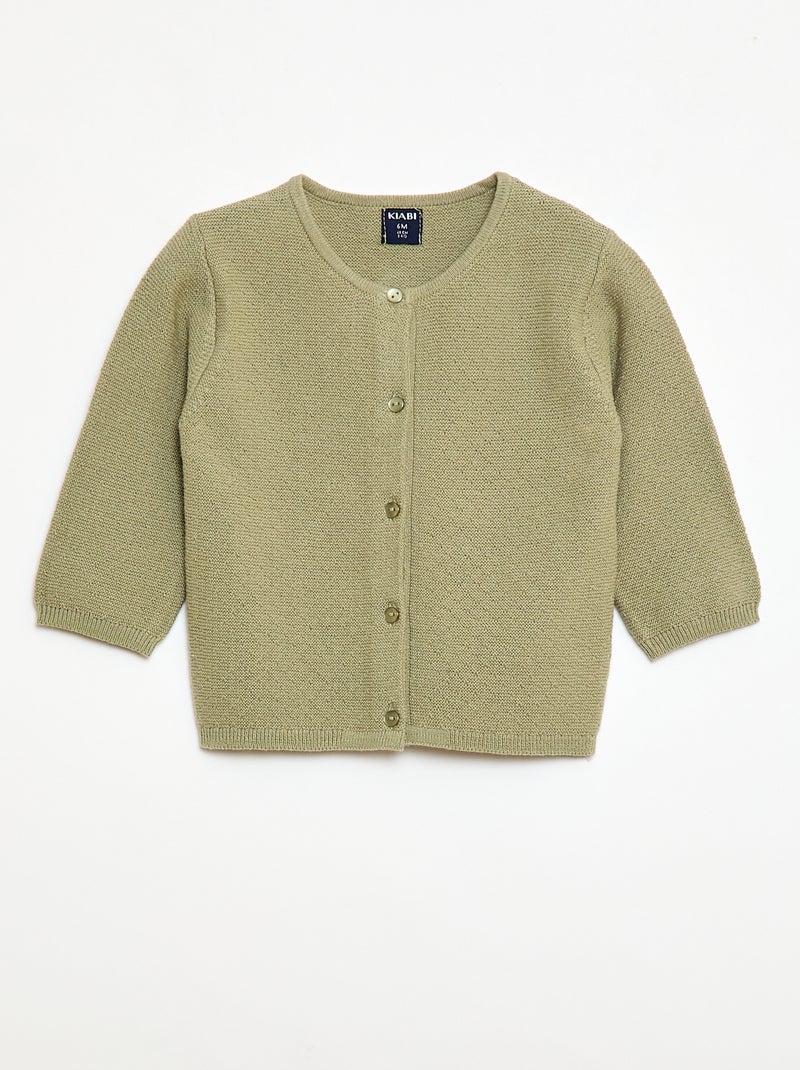 Het vest van fantasie ajourgebreide stof, een zachte en tijdloze basic voor baby's.