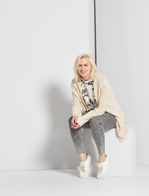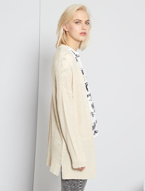 Een donzig tricot voor een vest met cocoon-effect! Vest van fantasietricot