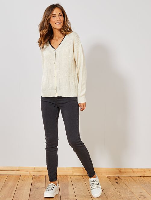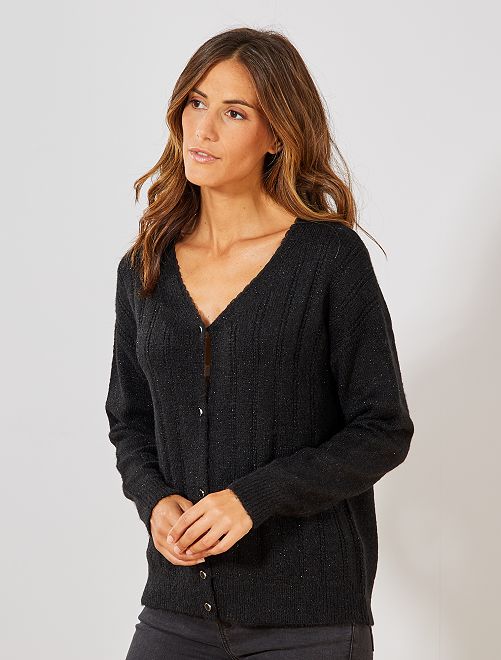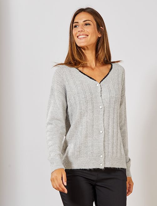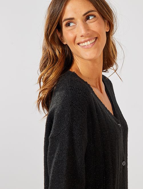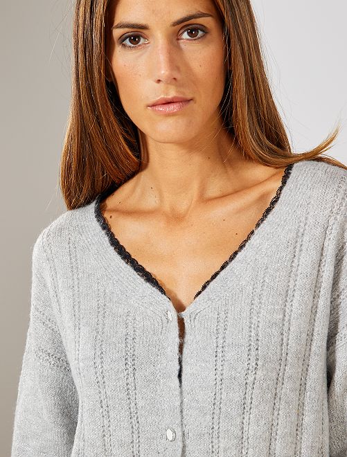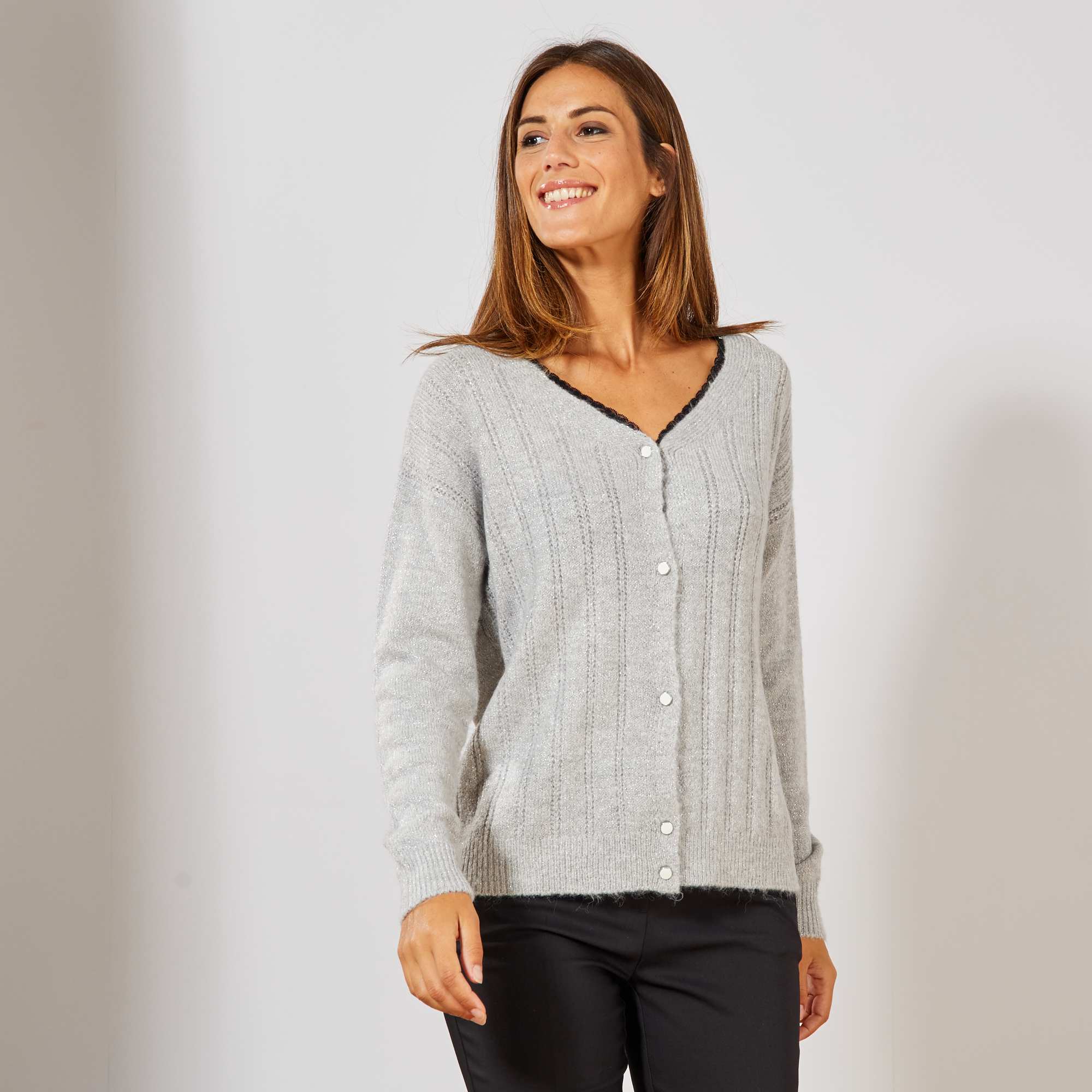 De glitter geeft dit vest van zacht tricot een originele touch. Het kant op de hals maakt het vest nog vrouwelijker.