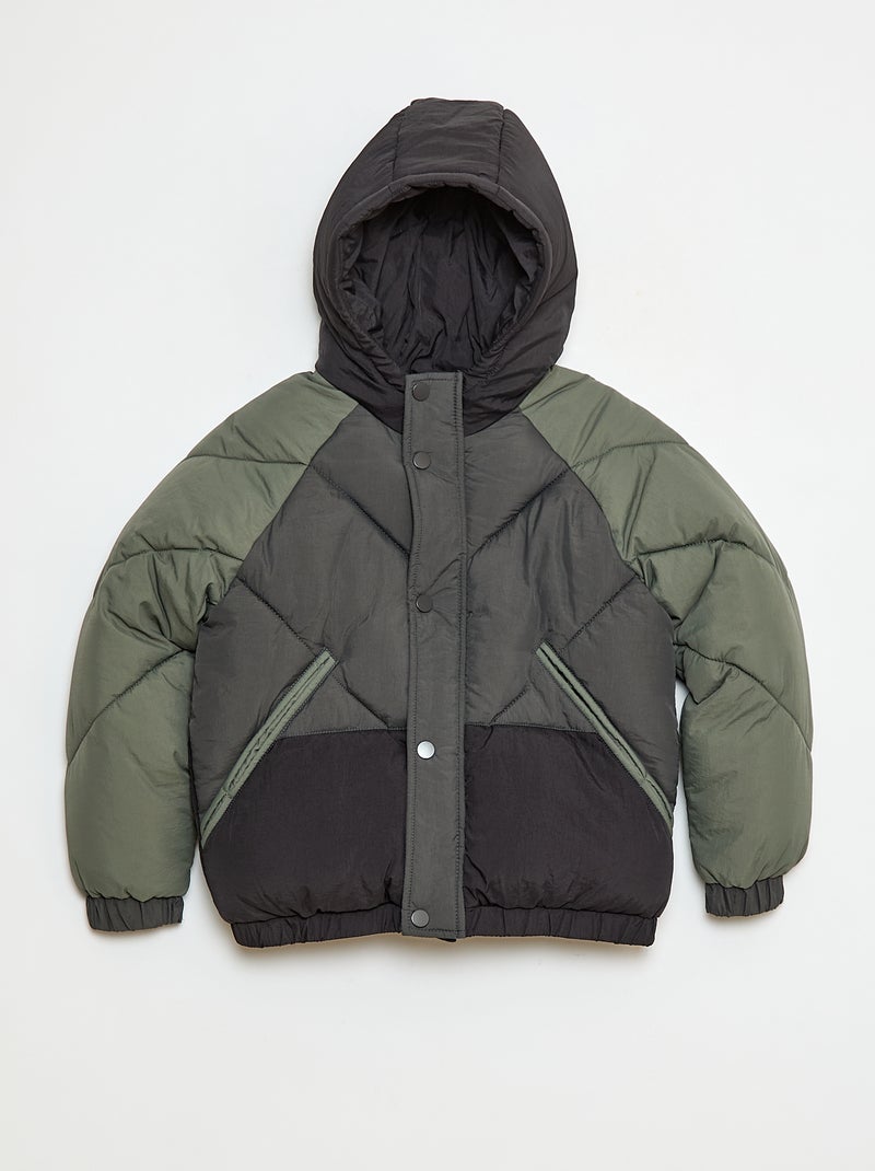 Waterafstotend, gewatteerd donsjack met colorblockpatroon - Grijs