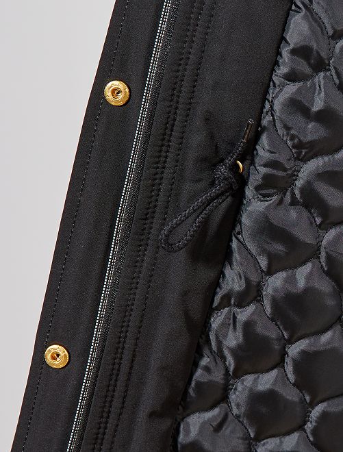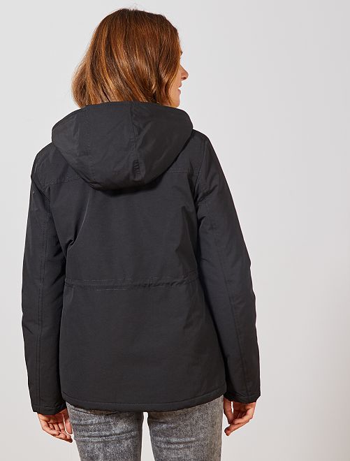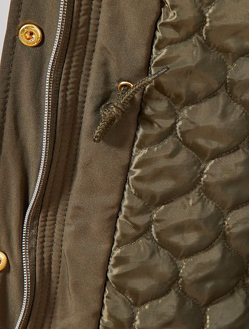 - Ritssluiting aan de voorkant met bedekte drukknoop