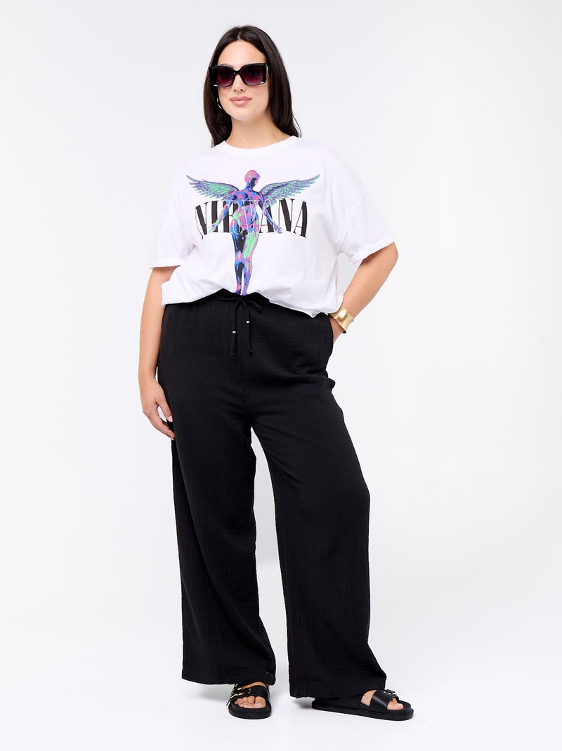 Wijde broek van katoengaas - Zwart