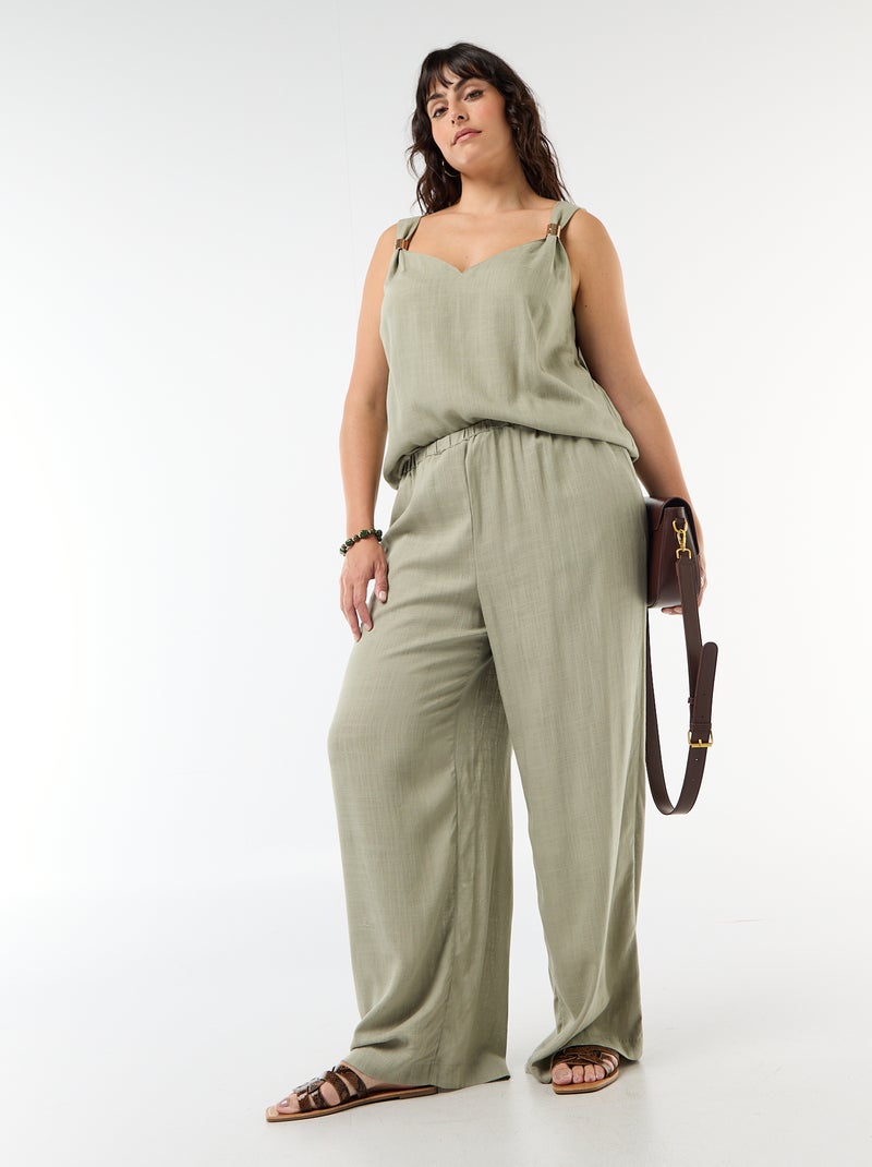 Wijde broek van linnenmix - Lichtgroen