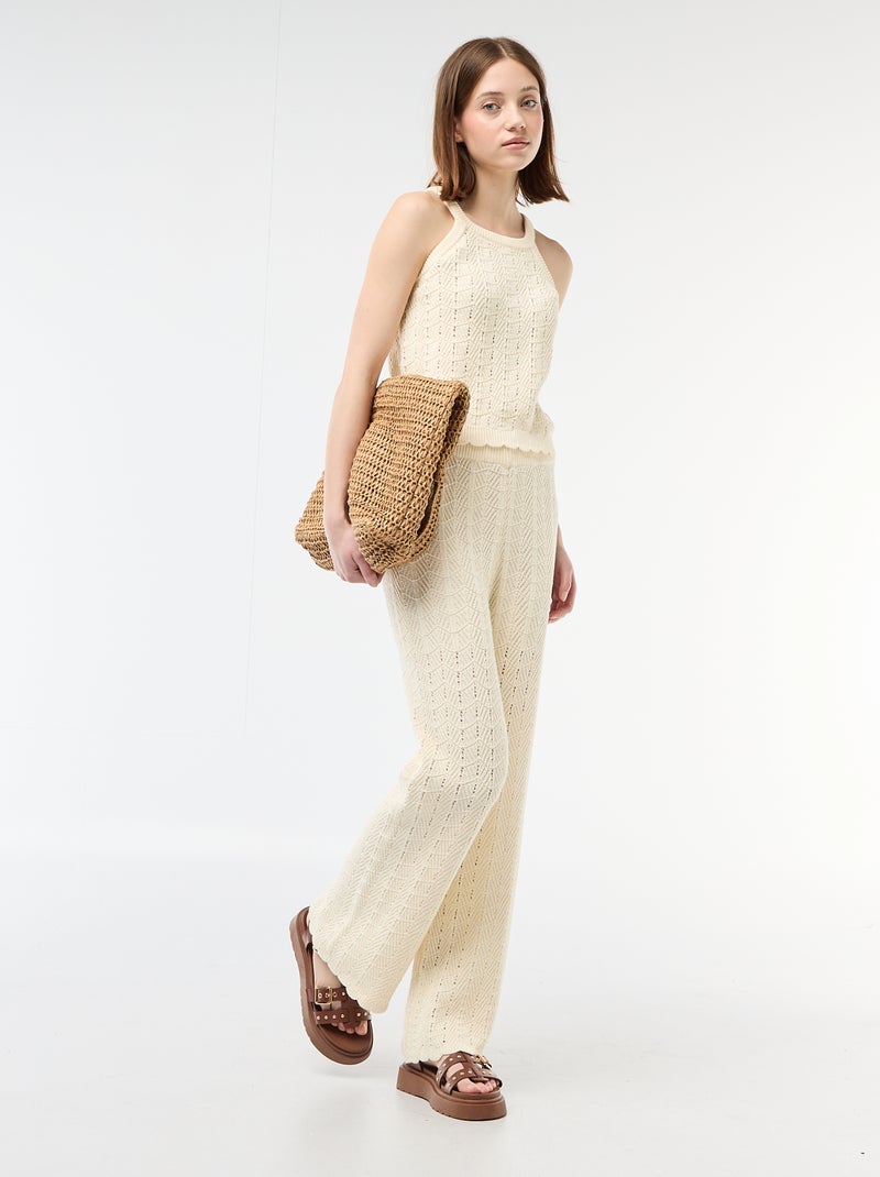 Wijde gehaakte broek - Biege
