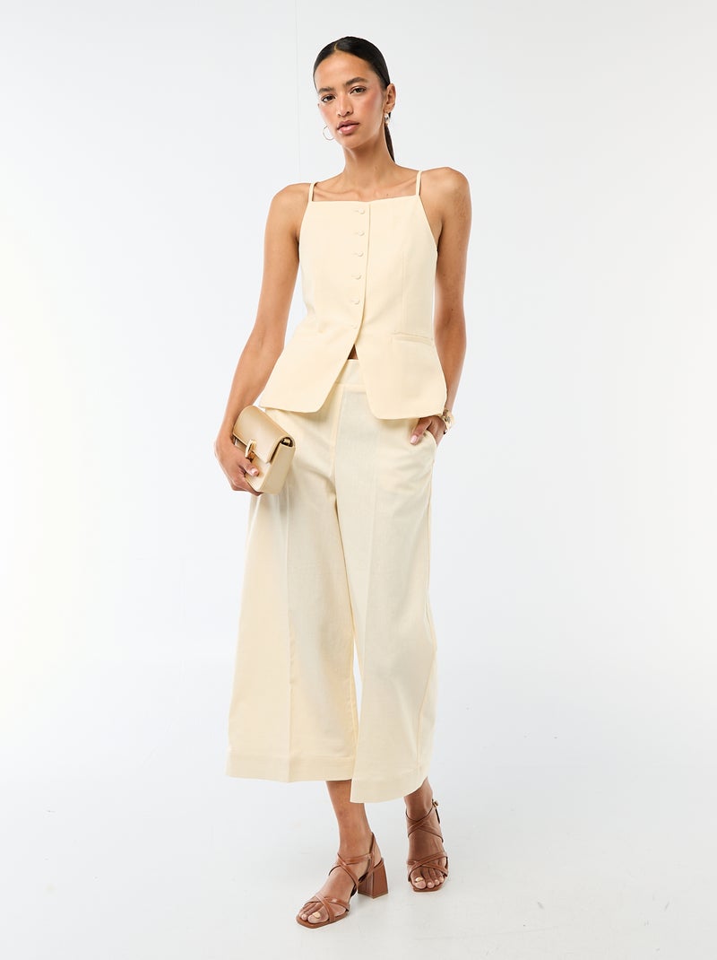 Wijdvallende culottebroek van linnenmix - Biege