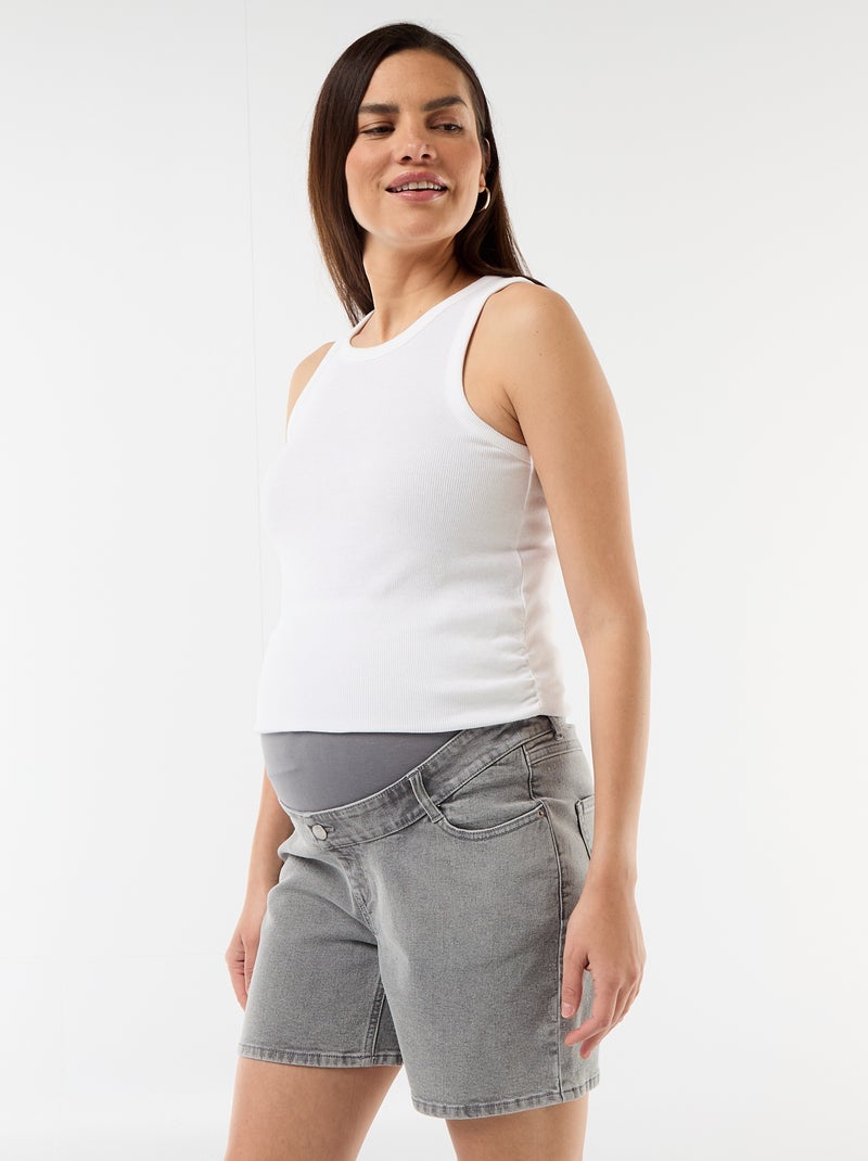 Zwangerschapsbermuda met hoge taille van denim - Grijs
